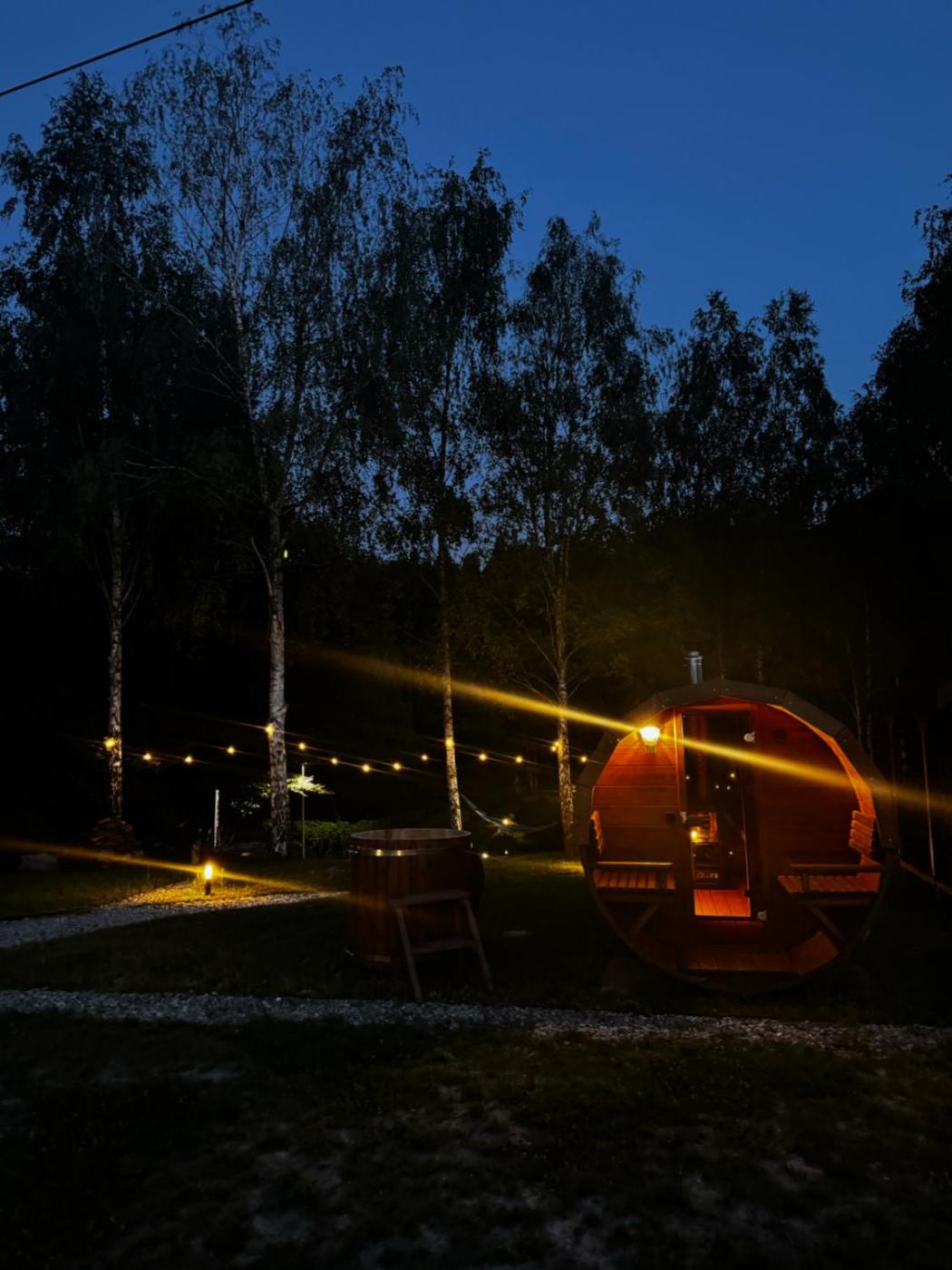 Domek. This chalet features a hot tub and a sauna. This chalet features 1 living room, 1 separate bedroom and 1 bathroom with a shower and free toiletries. The chalets kitchenette, which has a refrigerator, is available for cooking and storing food. The air-conditioned chalet features a flat-screen TV, a wardrobe, a barbecue, a sofa as well as lake views. The unit has 4 beds. Domek - 6 osobowy. Powierzchnia pokoju ok.: 35 mkw.