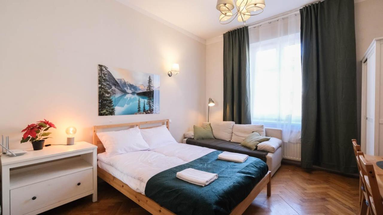 Studio. Providing free toiletries, this studio includes a private bathroom with a shower and a hairdryer. The well-fitted kitchen features a stovetop, a refrigerator, kitchenware and a microwave. The studio provides a washing machine, a private entrance, a tea and coffee maker, a flat-screen TV with streaming services, as well as city views. The unit offers 2 beds. Studio - 4 osobowy. Powierzchnia pokoju ok.: 27 mkw. ;