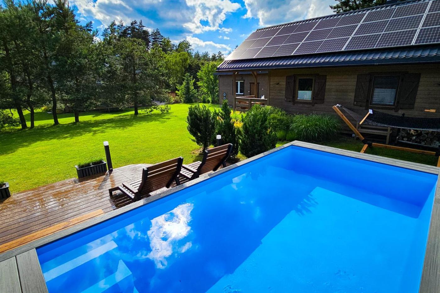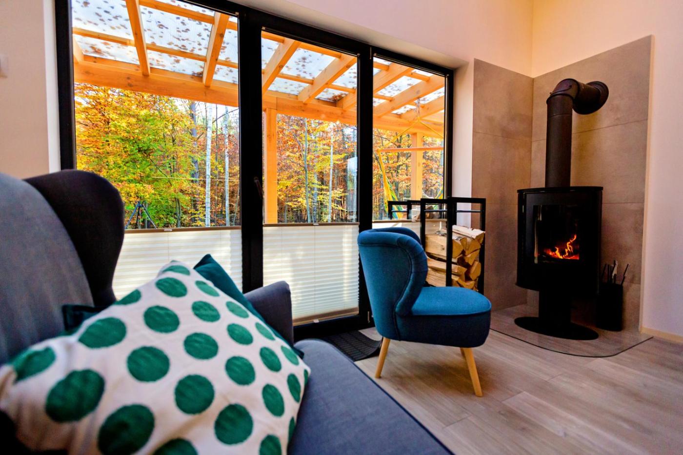 Domek typu Superior. This chalet provides a fireplace. Boasting a private entrance, this air-conditioned chalet includes 1 living room, 3 separate bedrooms and 2 bathrooms with a shower and a hairdryer. Guests will find a stovetop, a refrigerator, a dishwasher and kitchenware in the kitchen. The chalet also features a barbecue. The spacious chalet offers a washing machine, soundproof walls, a tea and coffee maker, a flat-screen TV with streaming services, as well as garden views. The unit has 5 beds. Domek - 8 osobowy. Powierzchnia pokoju ok.: 75 mkw.