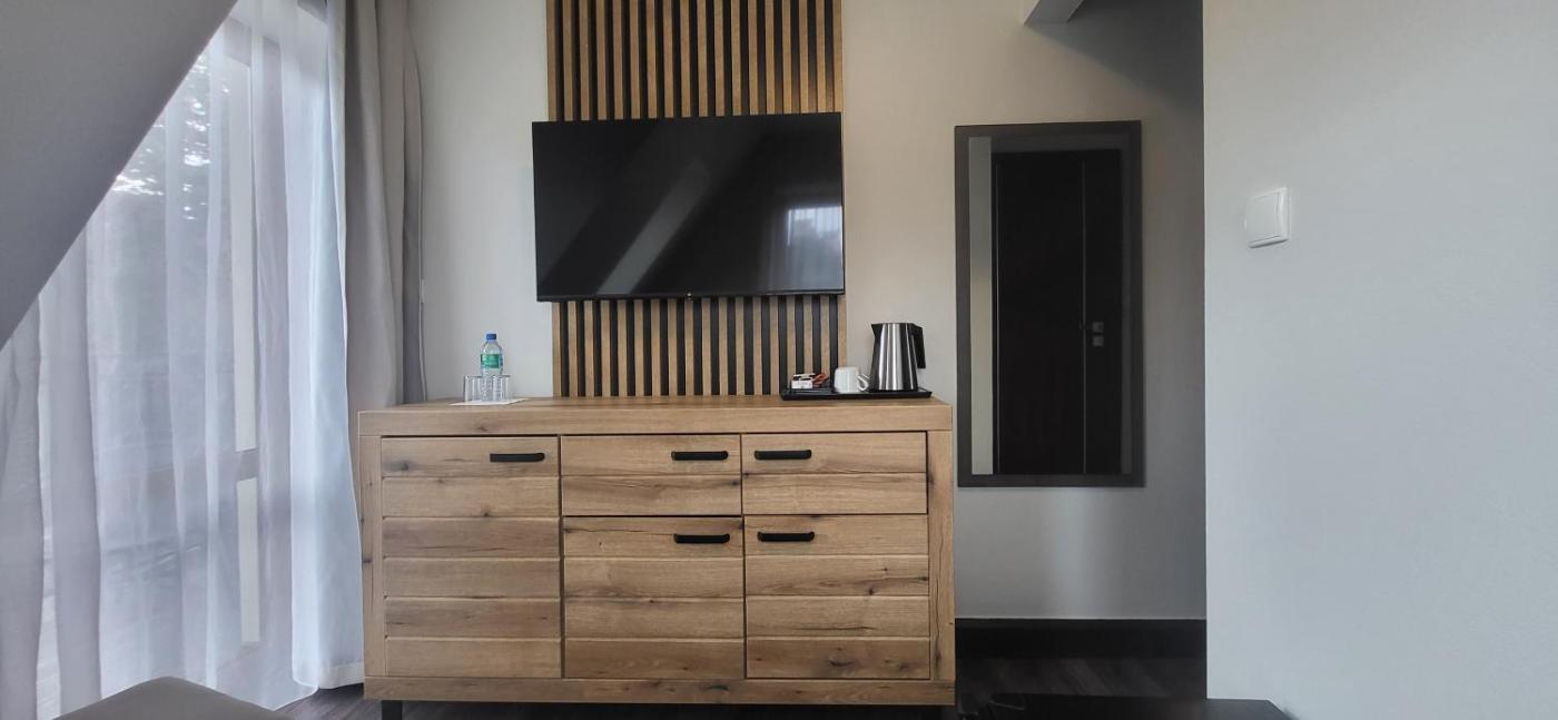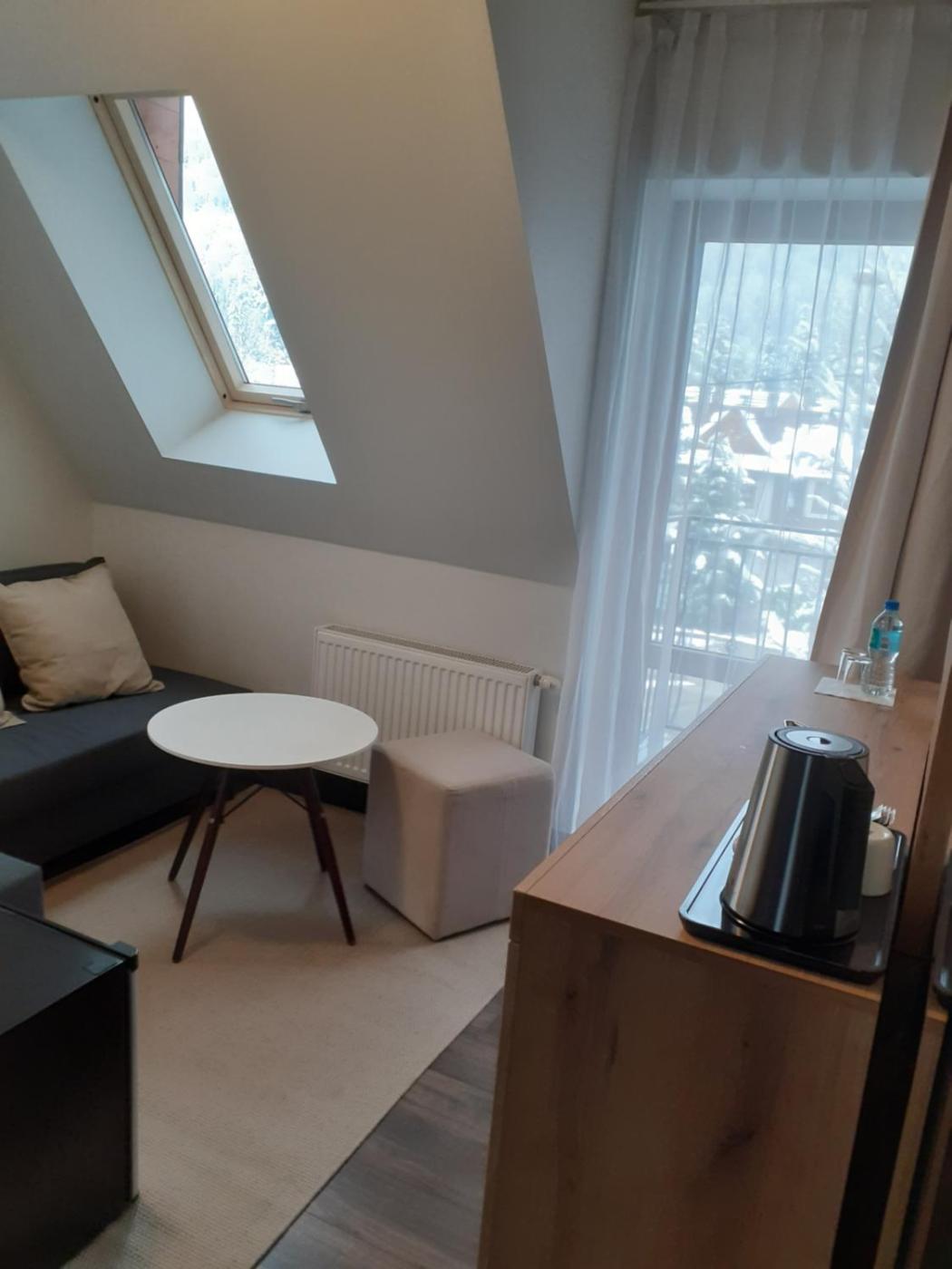 Pokój Dwuosobowy typu Deluxe z dodatkowym łóżkiem. Offering free toiletries, this double room includes a private bathroom with a shower and a hairdryer. The double room features parquet floors, a seating area with a flat-screen TV, a tea and coffee maker, a wardrobe as well as mountain views. The unit offers 2 beds. Pokój Dwuosobowy - 3 osobowy. Powierzchnia pokoju ok.: 18 mkw. ;